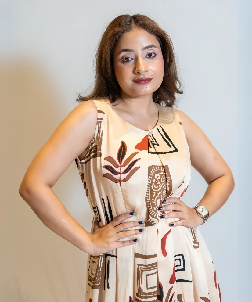 Fabric: Cotton Linen | Color: Biege with Multicolour Abstract Pattern | 1 Piece Dress