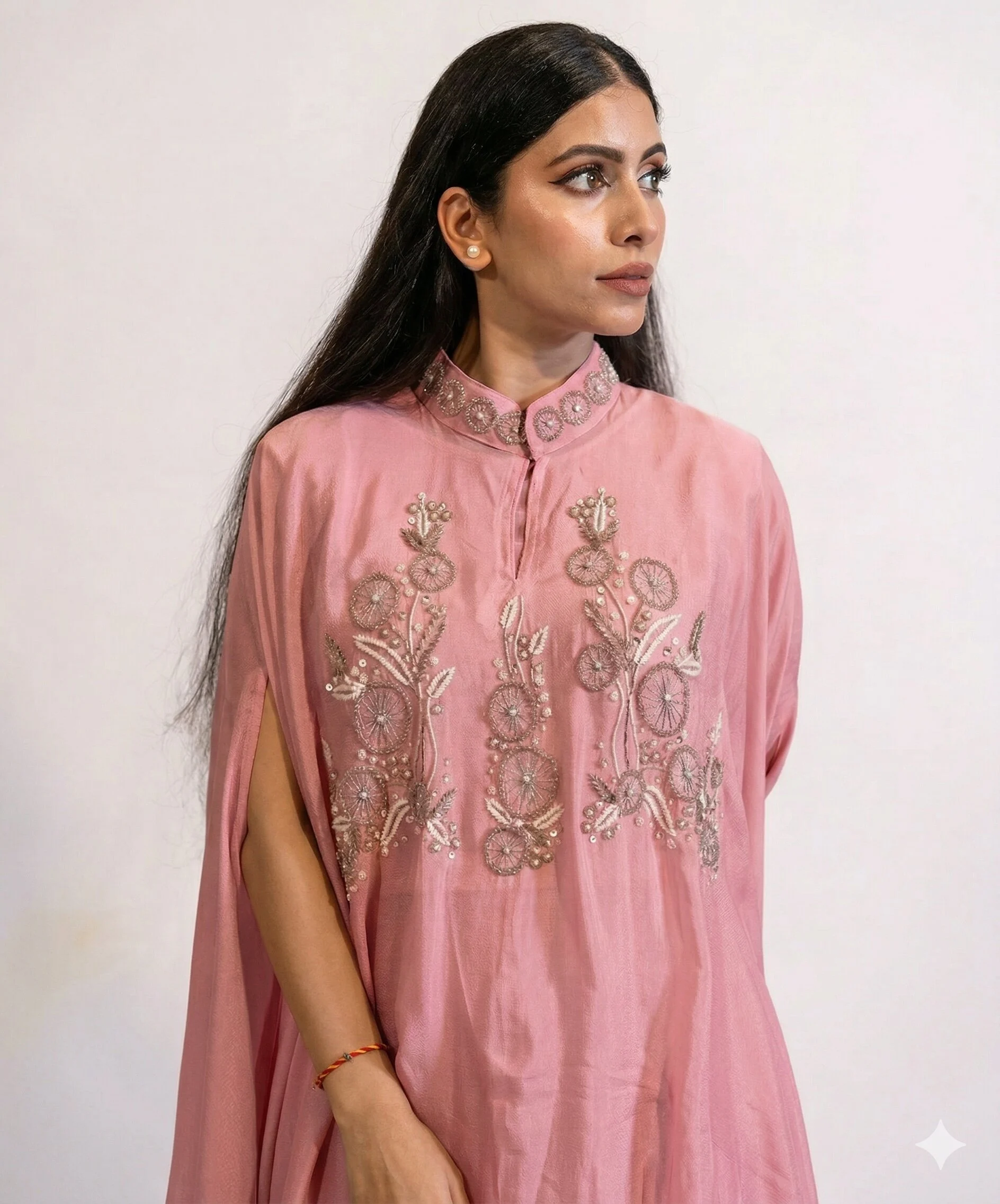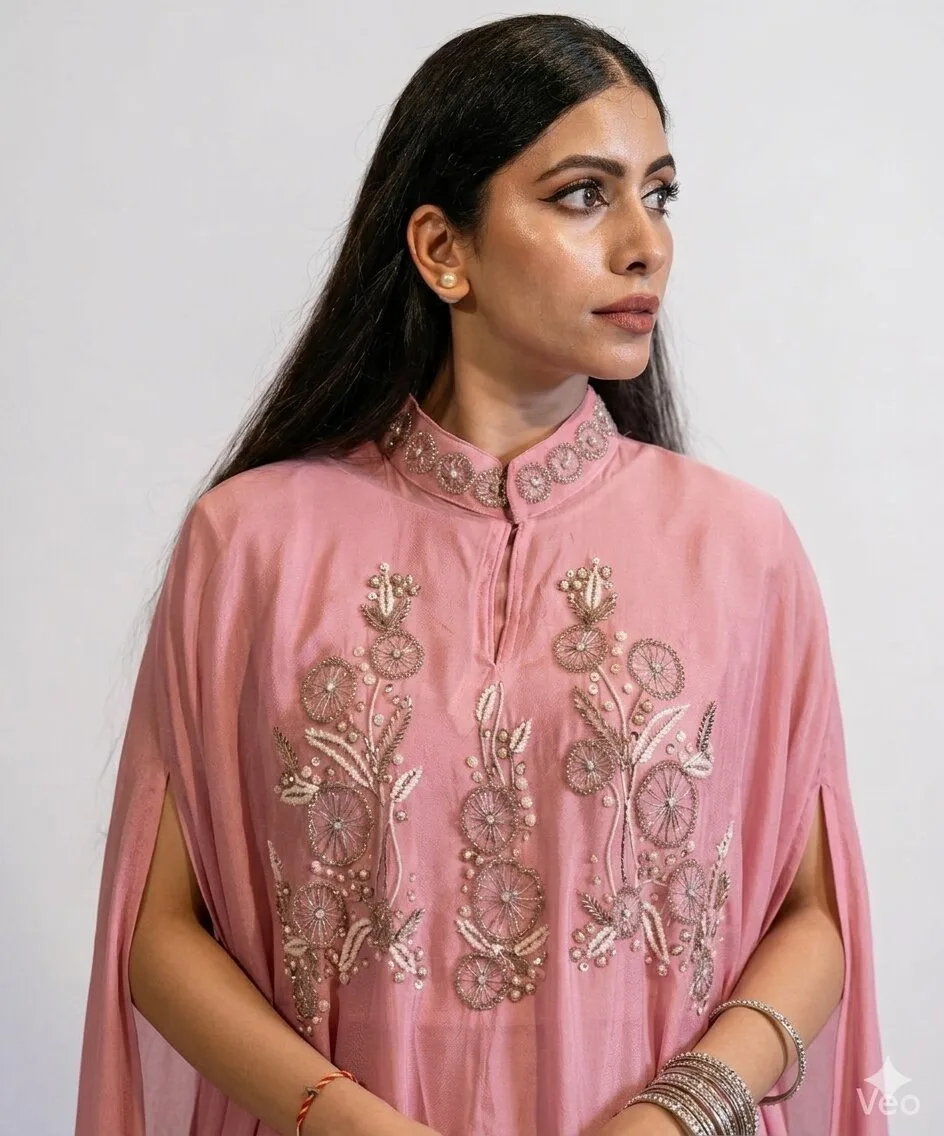 Effortlessly elegant, this Amara Rosewood Hand-Embellished 3-Piece Co-Ord Set For Women is a vision of refined glamour. The co-ord set is made from soft georgette fabric and feels like butter against the skin. The subtle shimmer of the champagne colour and rich embroidery detailing on the top, make the outfit a perfect blend of sophistication and grace. Designed for women who appreciate timeless fashion with a modern edge, this ensemble is ideal for cocktail evenings, festive gatherings, or celebrations where you want to stand out.