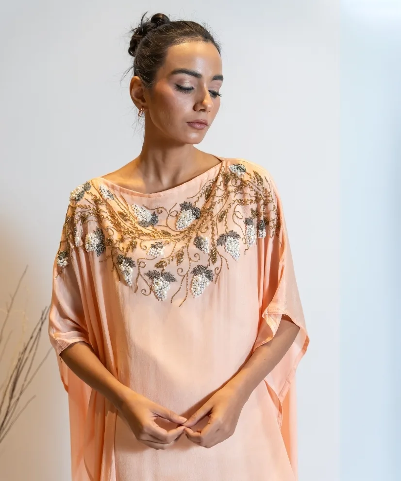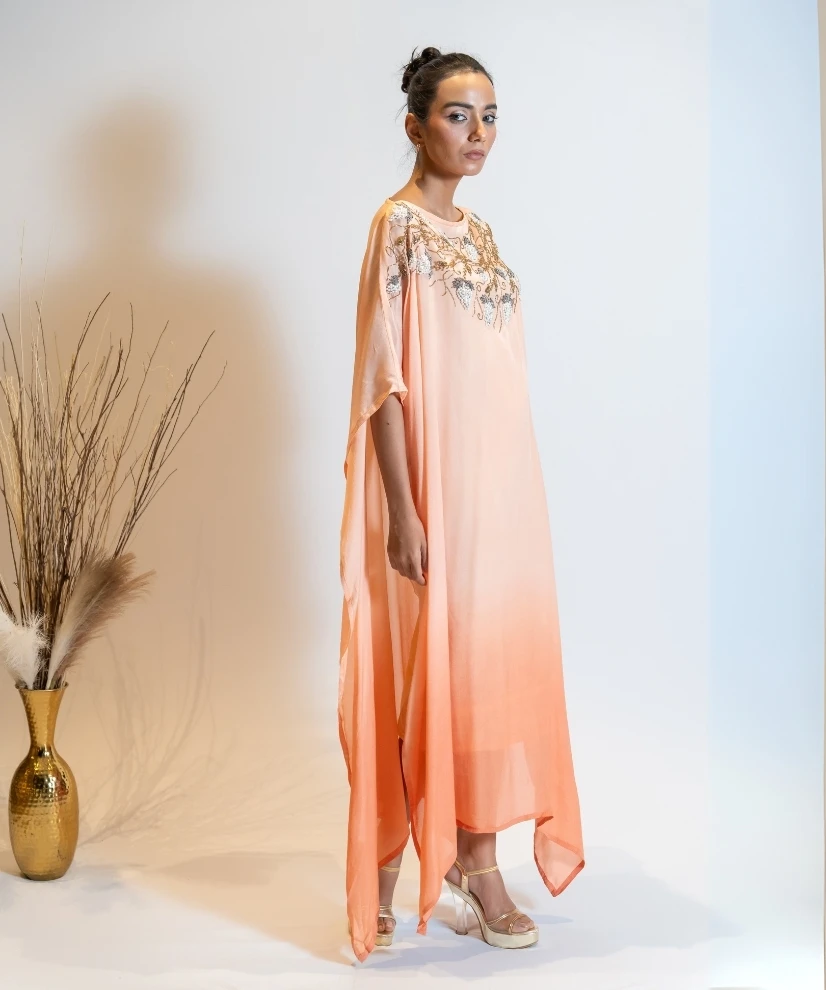 Fabric: Georgette | Color: Peach, Shaded from Light to Dark | 1 Piece Kaftan Dress with Inner Lining