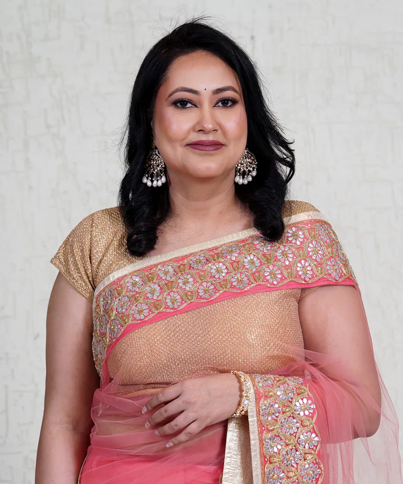 Drift into a world of dreamy elegance with this Coral Rose Net Saree, adorned with a meticulously handcrafted Aari Zardozi border. The sheer fabric drapes like a whisper, enhancing your natural grace while the intricate embroidery adds a touch of regal charm. This saree is the perfect blend of softness, femininity, and understated allure, making it a must-have for evening soirees, receptions, or festive gatherings.
