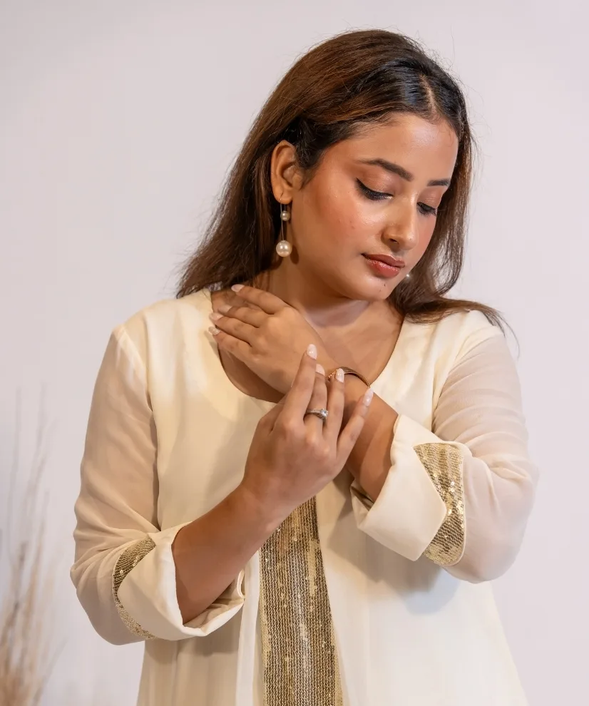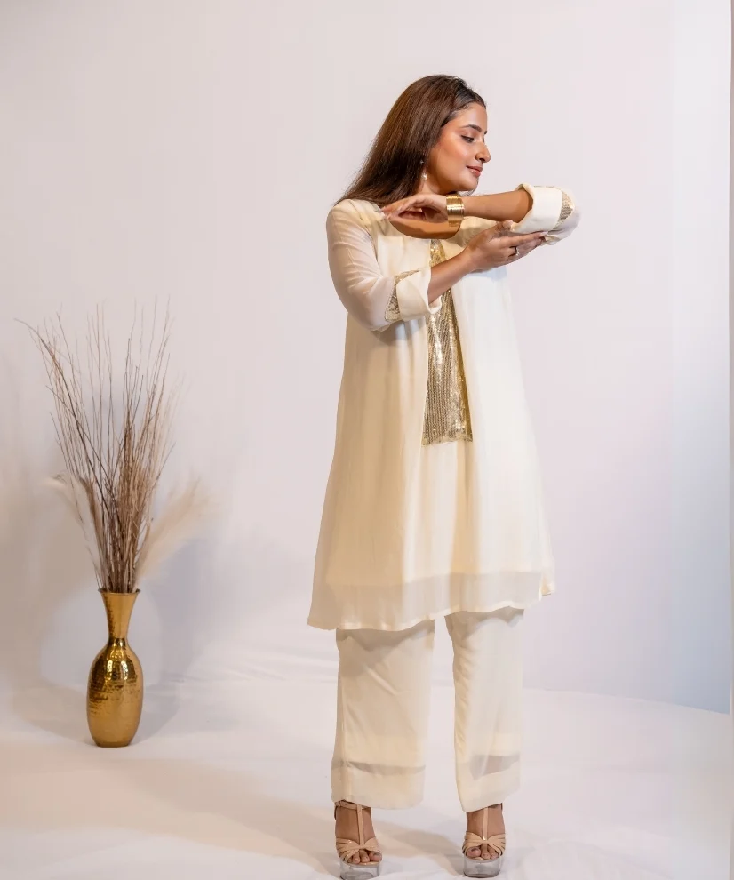 Fabric: Georgette | Silver Sequence Embroidery on the Top | Color: Off White | 2 piece Party Co-ord Set