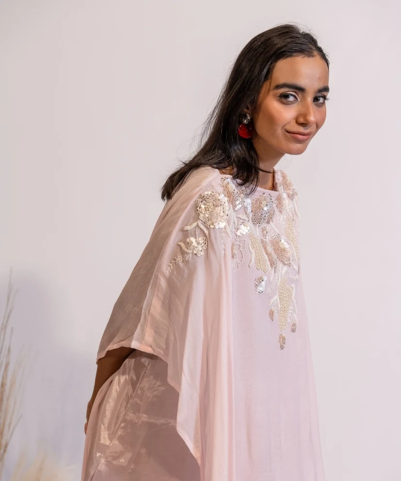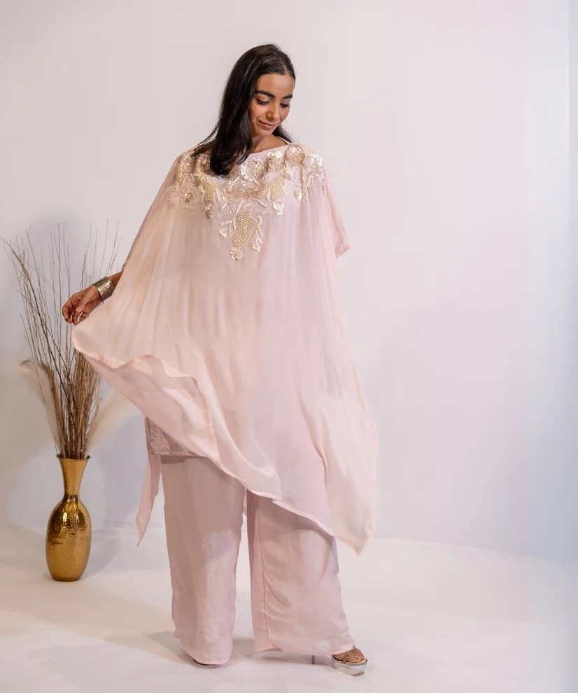 Soft, elegant, and effortlessly chic — this lavender co-ord set is made from lightweight georgette fabric for a breezy feel. The highlight of the outfit is it’s beautifully hand-embellished top, adorned with intricate bead and sequin work, adding a touch of glamour to it all. Paired with matching pants the dress is a perfect choice for cocktail evenings, festive gatherings and an elegant day to night look.
