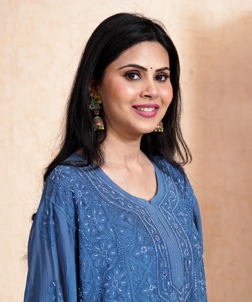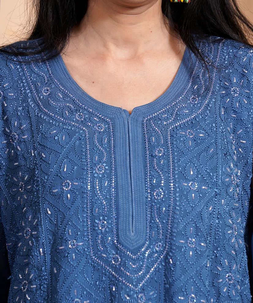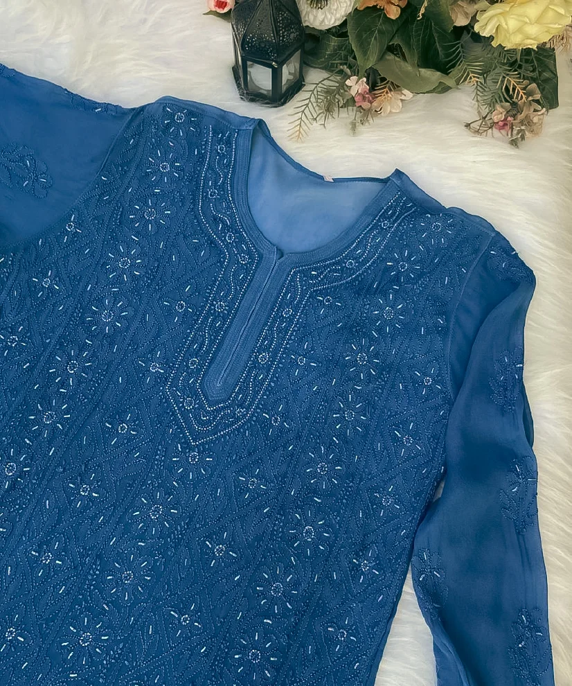 Fabric: Georgette | Weave: Lucknowi Hand Embroidered Chikankari | Color: Midnight Blue | Only Kurti Included